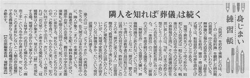 ブログ「自衛隊ジャーナリスト」で紹介したように、1月25日に東京で毎日新聞社編集局社会部編集委員の瀧野隆浩さんから取材を受けました。瀧野さんが「毎日新聞」朝刊に連載されている「身じまい練習帳」というコラムの取材でしたが、本日の朝刊に掲載さ…