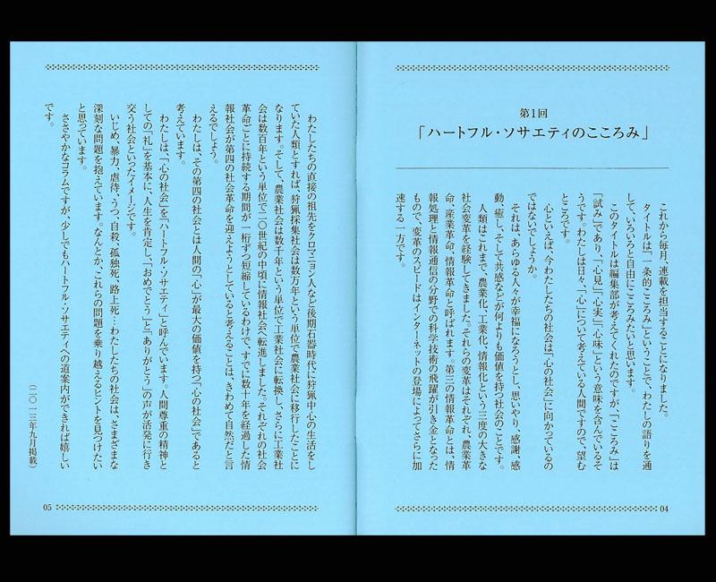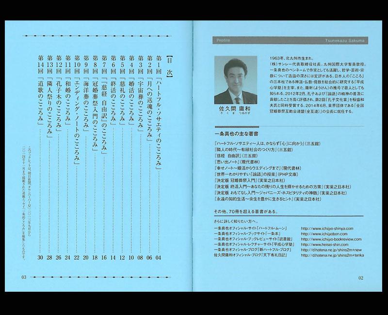 今回ご紹介する『こころのこころみ』は、2015年5月1日に刊行したブックレットです。朝日新聞「タウンペーパーQ」2013年9月号から2014年11月まで掲載された連載エッセイ「一条的こころみ」をまとめたものです。目次は、以下のようになっています。