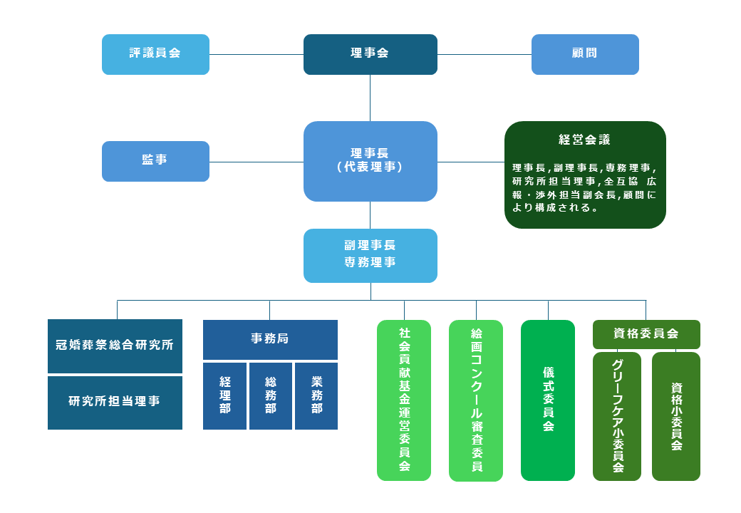 このたび、わたしは、一般財団法人 冠婚葬祭文化振興財団の理事長に就任しました。この財団は、人の一生に関わる儀礼である冠婚葬祭に代表される人生儀礼の文化を振興し、次世代に引き継いで行く事業を行い、わが国伝統文化の向上・発展に寄与することを目的に平成28年に設立されました。古来より続く冠婚葬祭文化を見直し、振興し、次世代に引き継ぐべく、助成金の交付、儀式等への支援、講座の開催、顕彰などの支援事業を行っております。本財団が実施しております具体的な事業は、資格制度事業・儀礼儀式文化振興事業・社会貢献基金事業・冠婚葬祭総合研究所事業を主とした4つの事業となります。