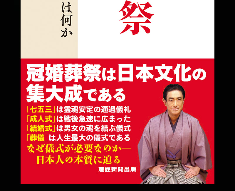 帯には「冠婚葬祭は日本文化の集大成である」と大書され、「七五三は霊魂安定の通過儀礼」「成人式は戦後急速に広まった」「結婚式は男女の魂を結ぶ儀式」「葬儀は人生最大の儀式である」「なぜ儀式が必要なのか――日本人の本質に迫る」と書かれて、小倉織の着物を着て正座するわたしの写真が使われています。カバー前そでには、「『こころ』というものは不安定である。安定させるためには『かたち』、すなわち『儀式』に容れる必要がある――。(まえがきより)」