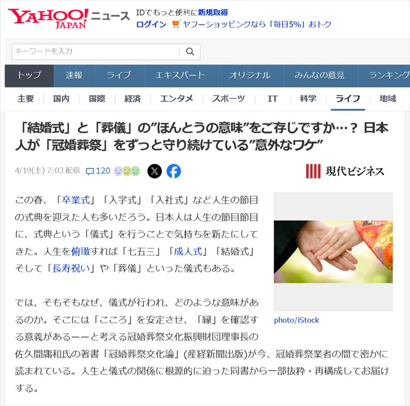 また、Googleで『冠婚葬祭文化論』と検索すると、「AI による概要」として、「『冠婚葬祭文化論』は、古くから日本に伝わる『冠婚葬祭』という四大儀礼や、その文化について論じた書籍です。