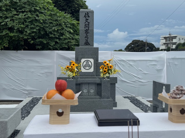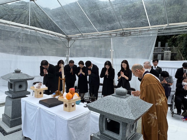 一周忌法要の後は、新しく建之した墓を開く儀式を行いました。「墓石開眼供養」です。「開眼供養(かいげんくよう)」とは、新しく仏壇、位牌、お墓などを購入・建立した際に、僧侶を招いて読経してもらい、魂を込める法要です。この儀式により、それらは単なる物から仏様や故人の魂が宿る供養の対象となります。