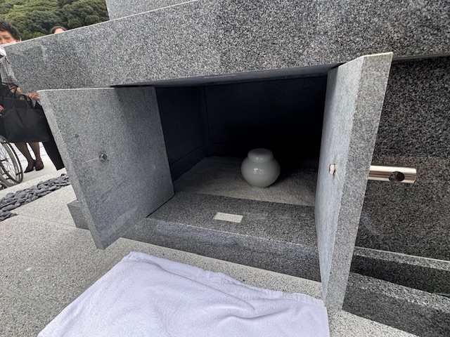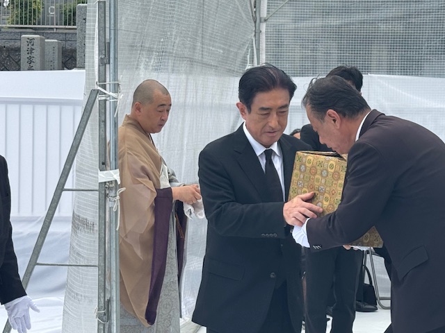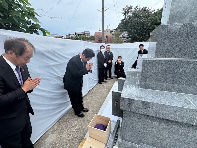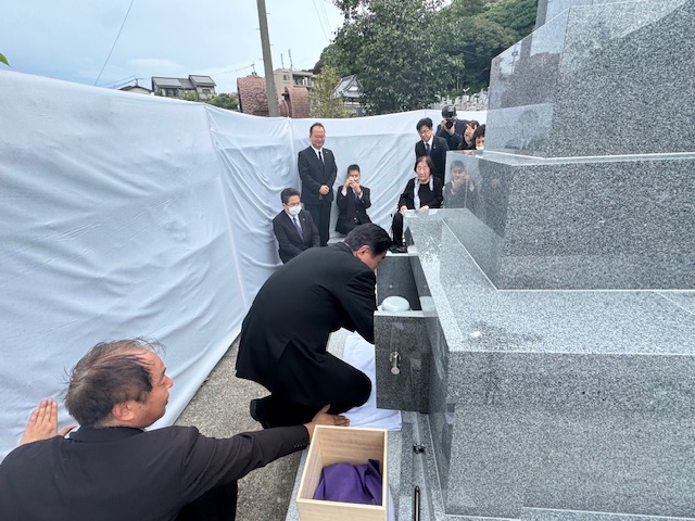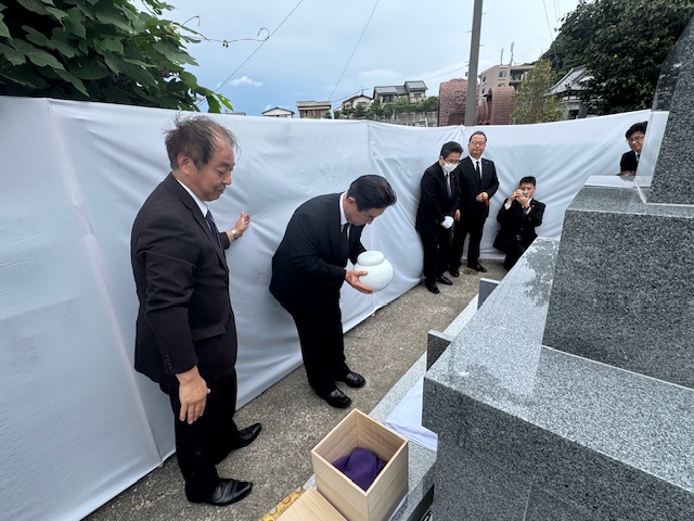 墓石開眼供養の後は、父の遺骨を「納骨」しました。納骨は、火葬後に遺骨を骨壺に収め、お墓や納骨堂に埋葬する供養の儀式です。いつまでに行うかなどの法的な期限はなく、四十九日法要や一周忌などの法要のタイミングに納骨をされるや、ご遺族の気持ちが落ち着いた頃に行われることが一般的となっています。