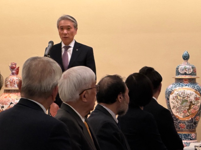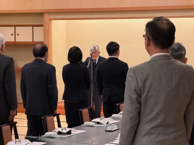 この日は、みなさんから「松柏園さんの料理は本当に美味しいですね!」との有難いお言葉を頂戴しました。最後にデザートが出された後は、中締めの時間となりました。野嶋副会長の音頭で、「末広がりの三本締め」が行われました。「無縁社会」などと呼ばれる昨今ですが、ロータリークラブのような慈善団体に所属するのも大きな縁であると再確認しました。それは世の中を良くしようという志を抱き、同じ道を歩む「道縁」とでも呼ぶべきものだと思います。この日は、小倉ロータリークラブのみなさんの道縁が身に沁みました。