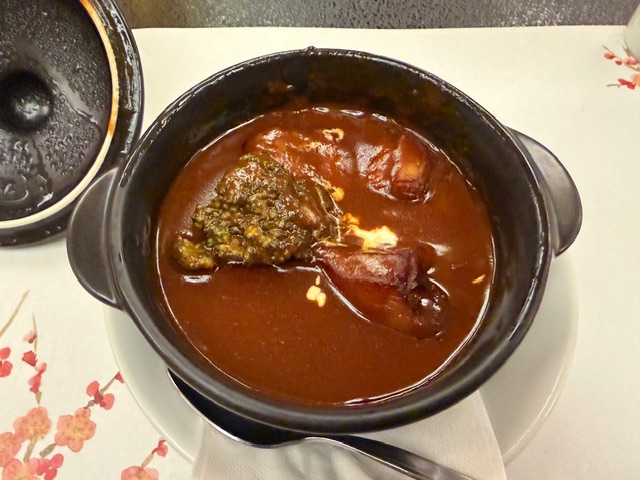 「ロータリーソング」の合唱後は、永照寺の村上会員の発声で乾杯となりました。村上会員は「日本一話の面白いお坊さん」です。この日もあまりにも話が面白いので、乾杯後に大きな拍手が起こりました。わたしの隣席は中学の後輩で、湖月堂グループの本村代表でした。彼と中学時代の思い出や現在の仕事の話題まで、いろいろな話をしました。宴席は大いに賑わいましたが、料理も大変好評でした。特に、ビーフシチューと〆の鯛茶漬けにお褒めの言葉を多く頂戴しました。松柏園の料理を褒めていただくのが一番嬉しいですね!